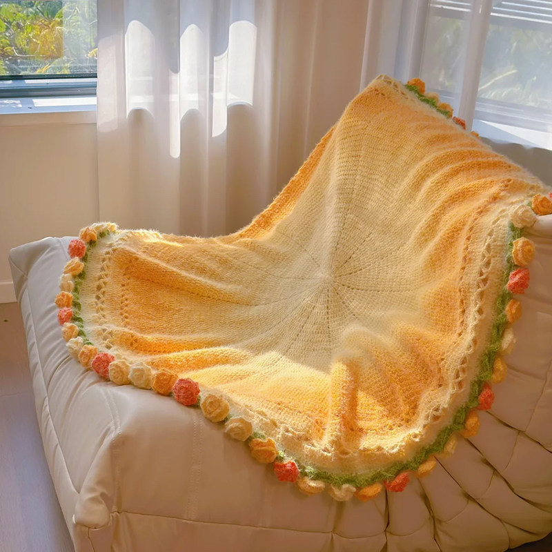 This isn't just a blanket; it's a sculptural textile artwork. Featuring a stunning arrangement of three-dimensional roses with pointed petals, the design creates a lifelike "bouquet" effect, blending timeless romance with a modern, eye-catching aesthetic perfect for social media sharing.